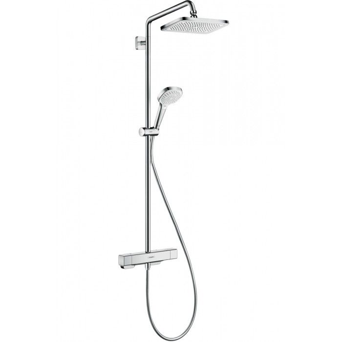 HG Croma E 280 1jet Душевая система Showerpipe с термостатом для душа, хром 27630000.Оснащение: душевая лейка, душевая штанга, душевой шланг, кронштейн для верхнего душа.