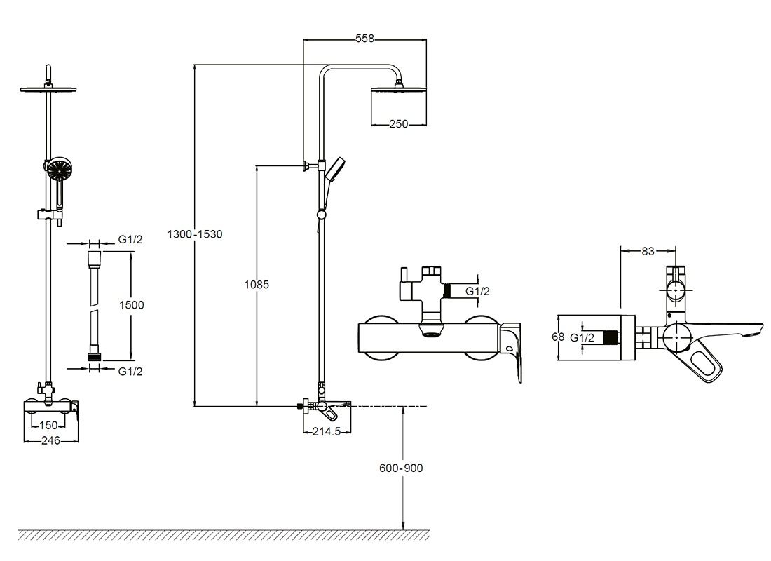 ПОЛНОЦЕННОЕ РЕШЕНИЕ ДЛЯ ВАННЫ И ДУШАСтандартный смеситель с изливом для ванны, душевая лейка с держателем, верхний душ, шланг