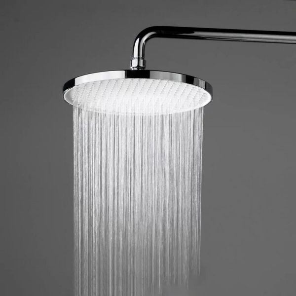 Верхний душ и ручная лейка имеют форму круга. Стойка выполнена из нержавеющей стали, круглая в сечении. У ручной лейки предусмотрены четыре режима потока. Регулировка высоты при установке – 1114-1874 мм.