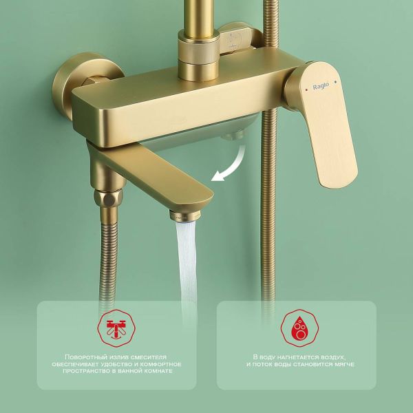Душевая стойка Raglo R03.24.03 золотой сатин