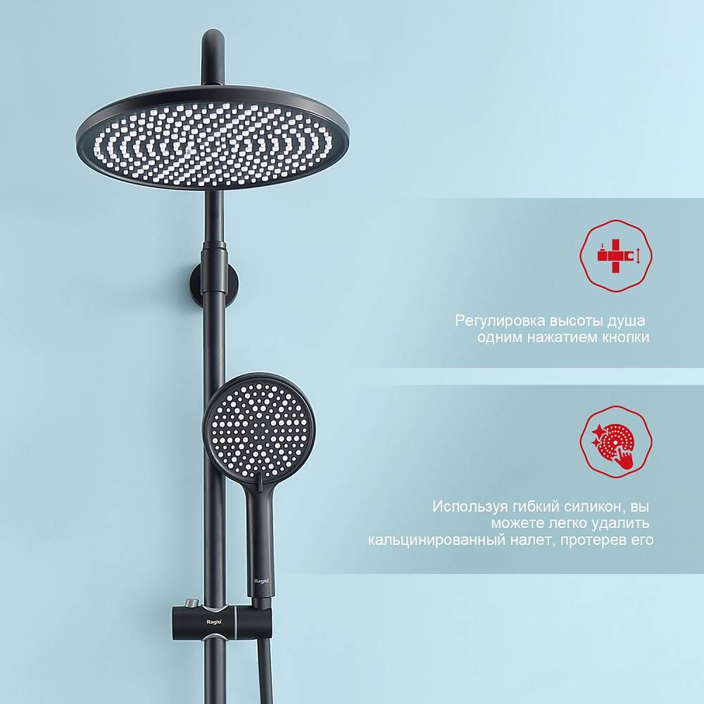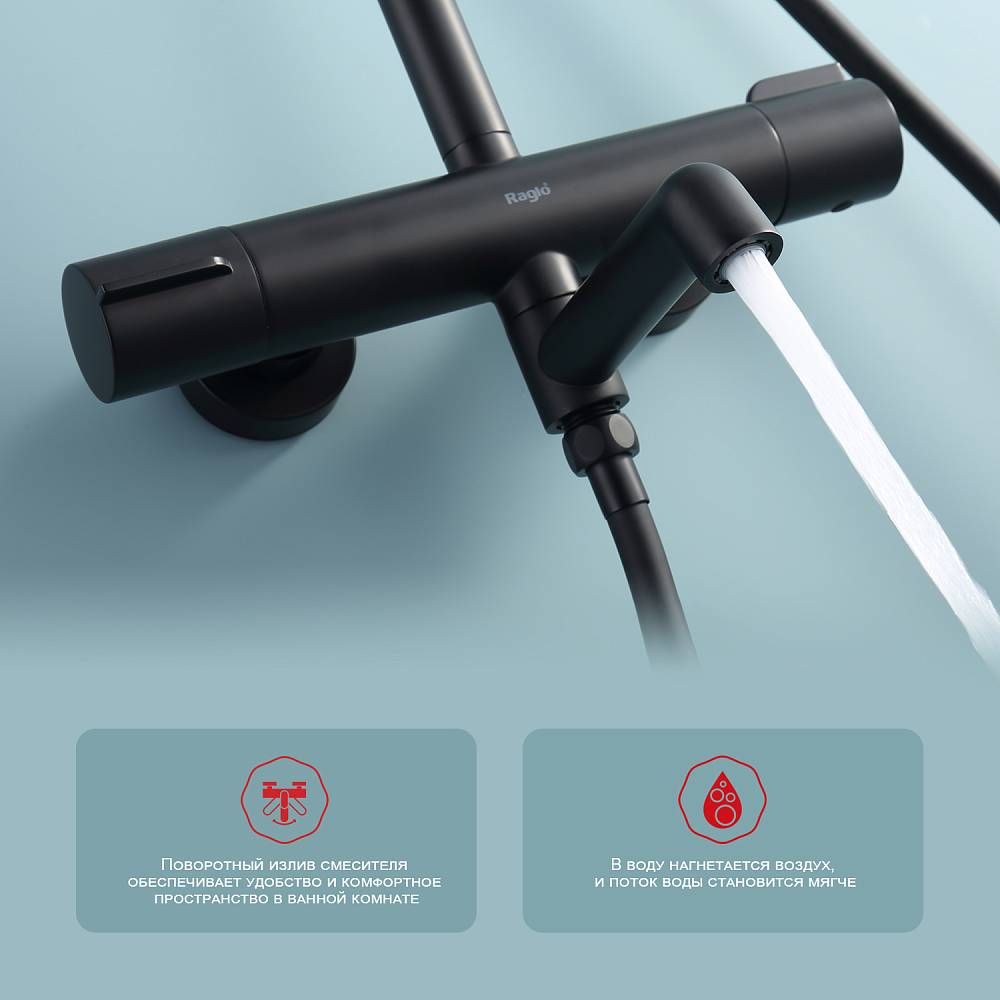 Душевая стойка Raglo R20.26.06 с термостатом чёрный купить