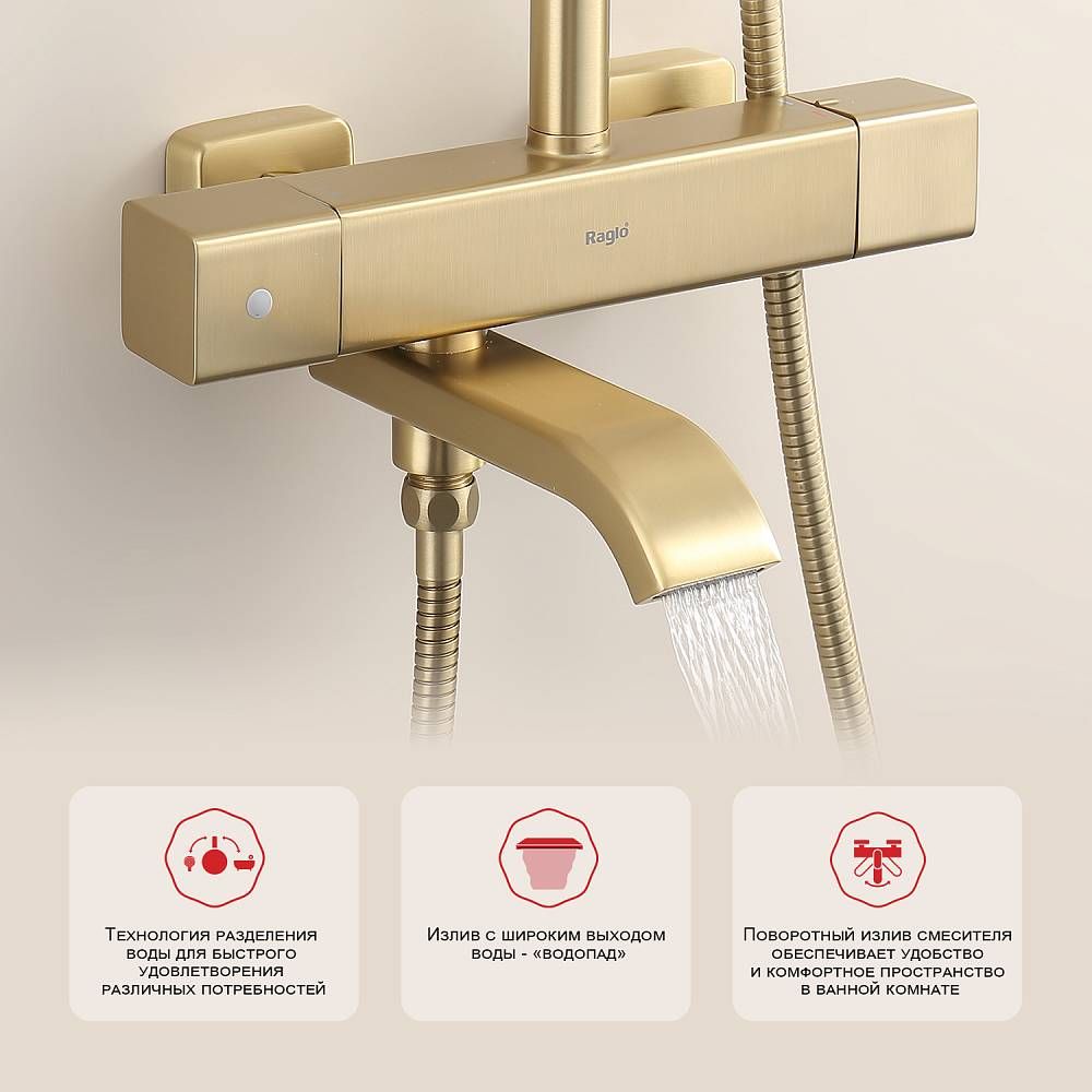 Душевая стойка Raglo R22.26.03 с термостатом золотой сатин купить