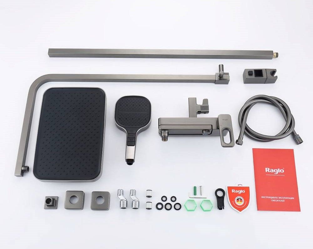 Душевая система Raglo R51.24.09Материал: латунь.Управление: однорычажное.Механизм: керамический картридж.Излив: поворотный. Аэратор.Регулируемая по высоте душевая штанга: 1087-1655 мм.Форма верхнего душа: прямоугольная.Размер верхнего душа (ШхД): 330х220 мм.Регулируемый по высоте и наклону держатель ручного душа.Количество режимов струи ручного душа: 4.Отверстия для монтажа: 3.Стандарт подводки: G 1/2.Монтаж: на стену.