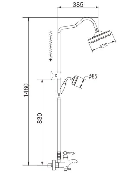 Душевая система Rose R0136, хром.Монтаж: настенный.Стилистика дизайна: ретро.Управление: рычажное.Размер верхнего душа: 21x21.Форма верхнего душа: круглая.
