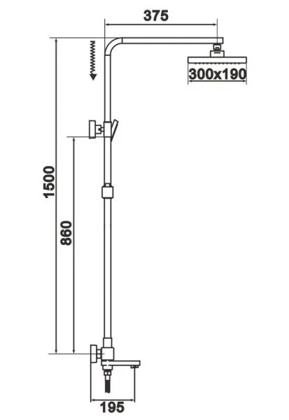 Душевая система Rose R1036H, черный.Монтаж: настенный.Стилистика дизайна: современный стиль.Управление: рычажное.Размер верхнего душа: 30x19.Форма верхнего душа: прямоугольная.