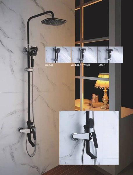 Душевая система Rose R1336H, черный.Монтаж: настенный.Стилистика дизайна: современный стиль.Управление: рычажное.Размер верхнего душа: 26x20.Форма верхнего душа: прямоугольная.