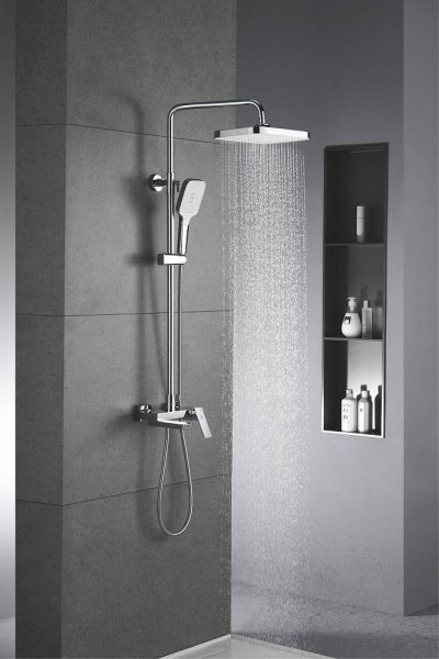 Душевая система Rose R1836, хром.Монтаж: настенный.Стилистика дизайна: современный стиль.Управление: рычажное.Размер верхнего душа: 31,5x21.Форма верхнего душа: прямоугольная.