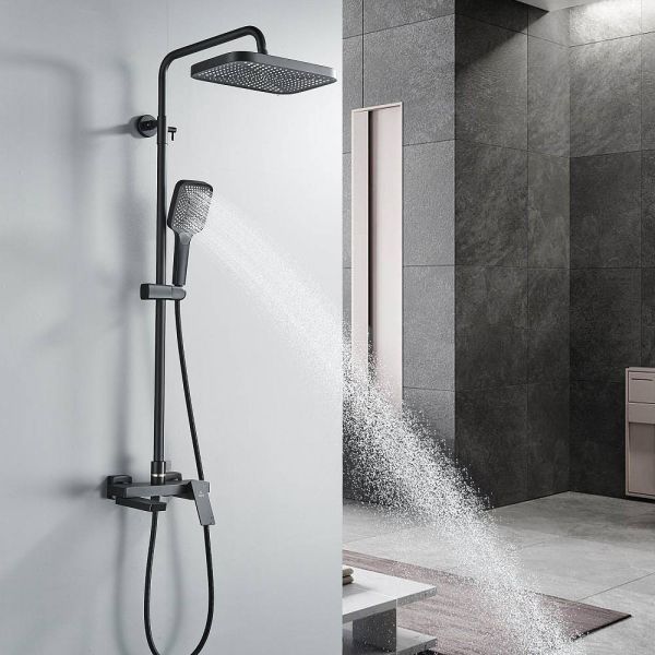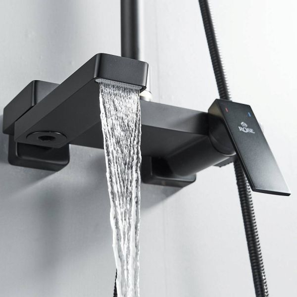 Душевая система Rose R1836H, черный.Монтаж: настенный.Стилистика дизайна: современный стиль.Управление: рычажное.Размер верхнего душа: 31,5x21.Форма верхнего душа: прямоугольная.