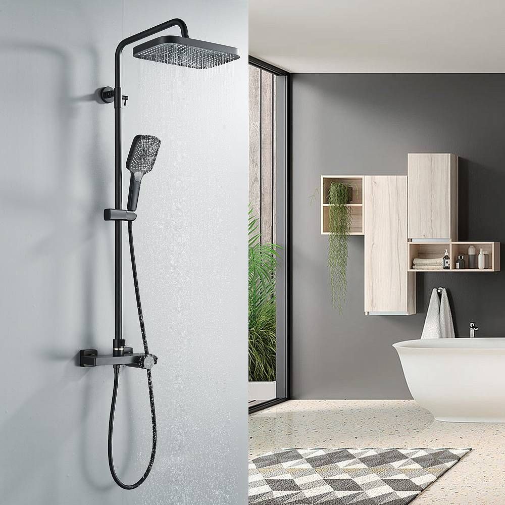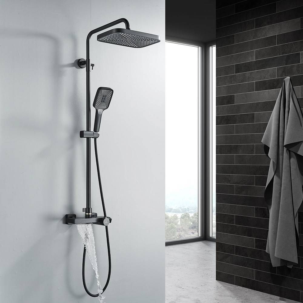 Душевая стойка Rose R1896H-6 с термостатом чёрный матовый купить