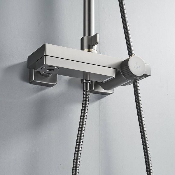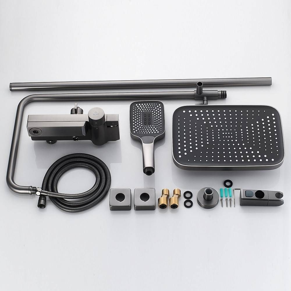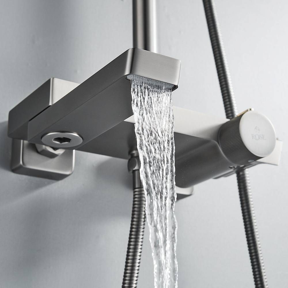 Душевая система с термостатом Rose R1896T, пепельный.Монтаж: настенный.Стилистика дизайна: современный стиль.Управление: термостат.Размер верхнего душа: 31,5x21.Форма верхнего душа: прямоугольная.