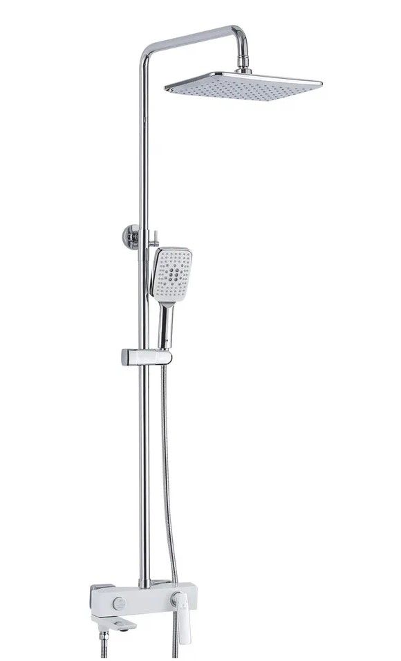 Душевая система Rose R2736F, белый/хром.Монтаж: настенный.Стилистика дизайна: современный стиль.Управление: рычажное.Размер верхнего душа: 28x18.Форма верхнего душа: прямоугольная.