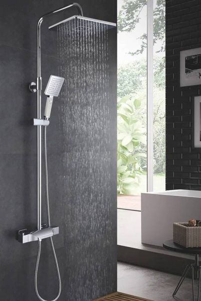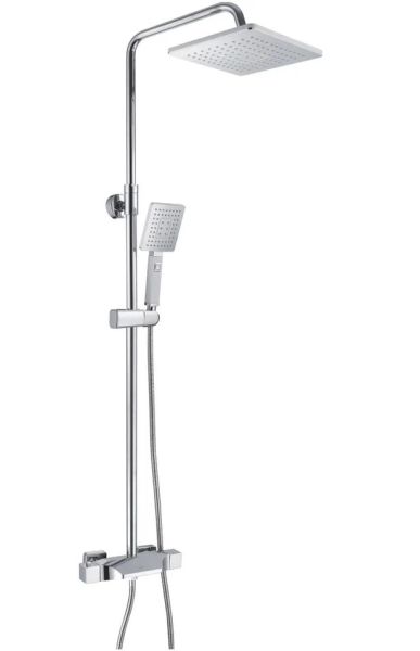 Душевая система с термостатом Rose R3736, хром.Монтаж: настенный.Стилистика дизайна: современный стиль.Управление: термостат.Размер верхнего душа: 30x20.Форма верхнего душа: прямоугольная.