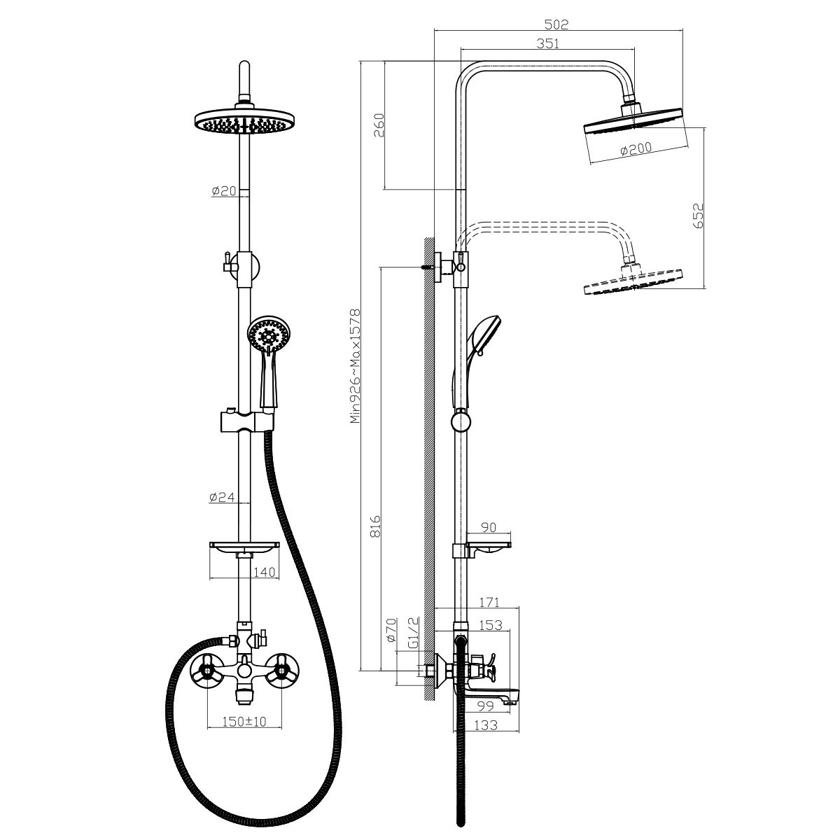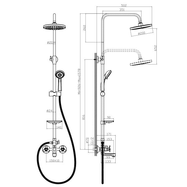 Размер верхнего душа: 20 см