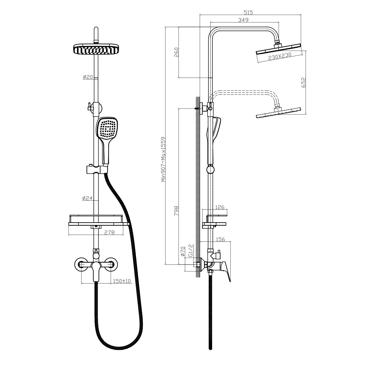 Размер верхнего душа: 23x23 см.
