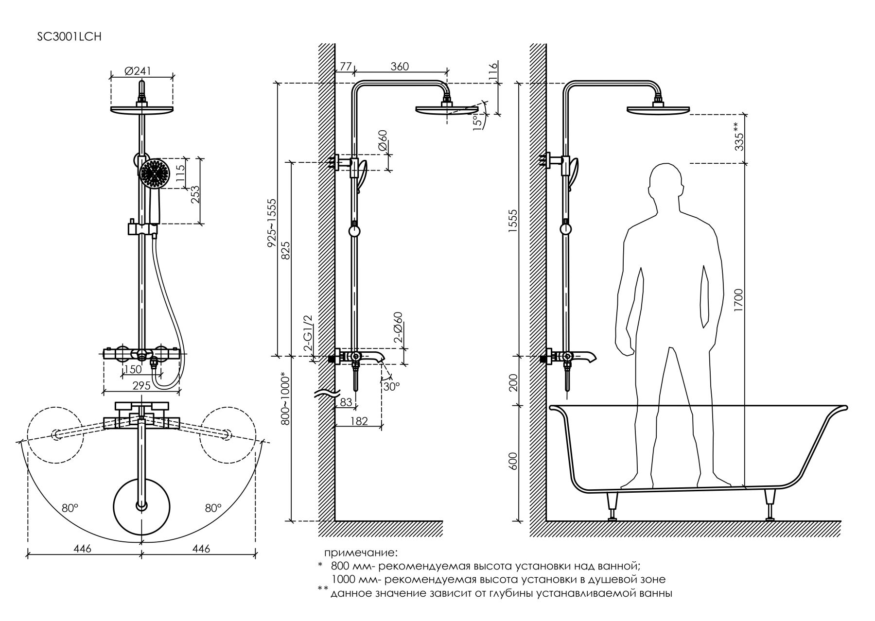 • Встроенный дивертер для переключения между верхним и ручным душем