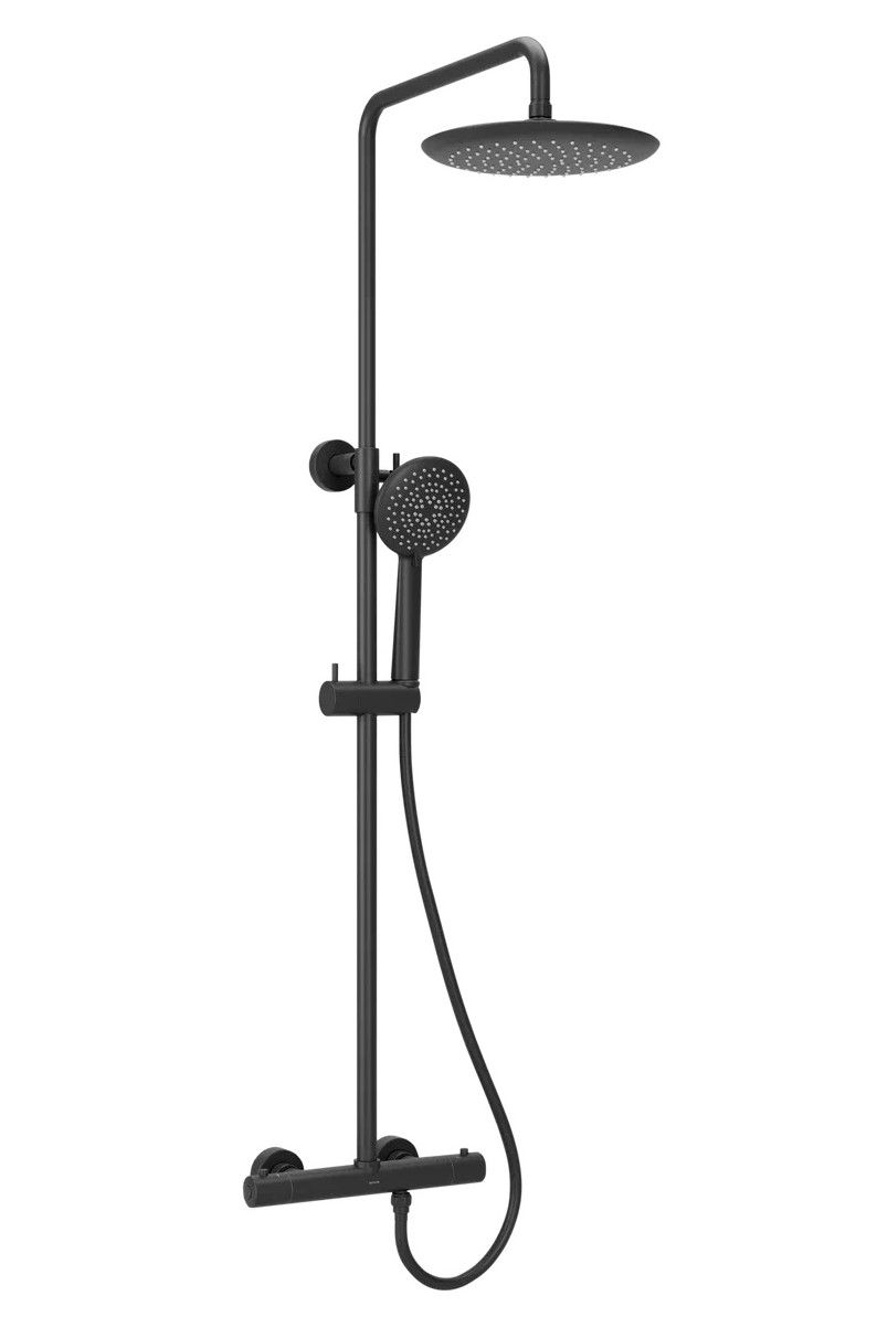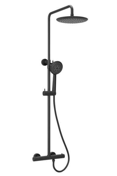 Душевая стойка SANCOS Game для душа с термостатическим смесителем, верхним, ручным душем и шлангом в комплекте, цвет черный матовый, арт. SC3002MB