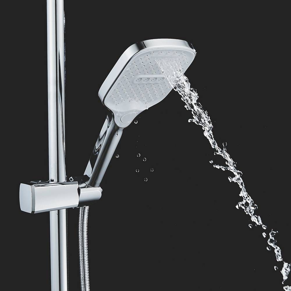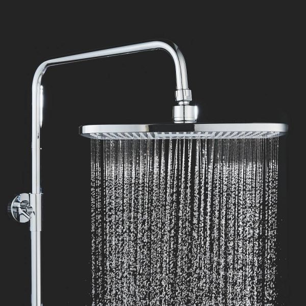 Верхний душ размером 310x210 мм из ABS-пластика легко регулируется по наклону благодаря встроенному шарниру. Он также оснащен самоочищающимися силиконовыми форсунками, которые защищают его от известкового налета, обеспечивая всегда чистый и сильный поток воды.