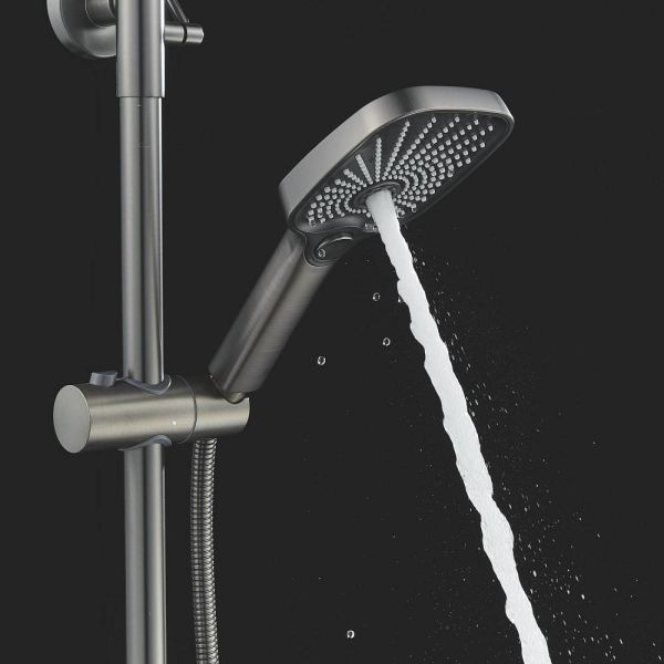 Ручной душ с 3 режимами работы также изготовлен из качественного ABS-пластика, регулируется по высоте и наклону для оптимального комфорта использования.