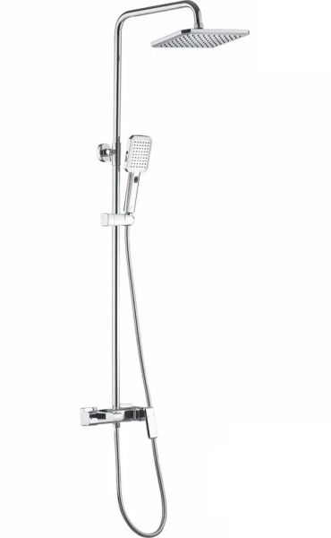 Душевая система Shevanik S8836, хром.Количество режимов струи: 2.Размер верхнего душа: 25x19 см.Управление: рычажное.Излив для наполнения ванны: да.