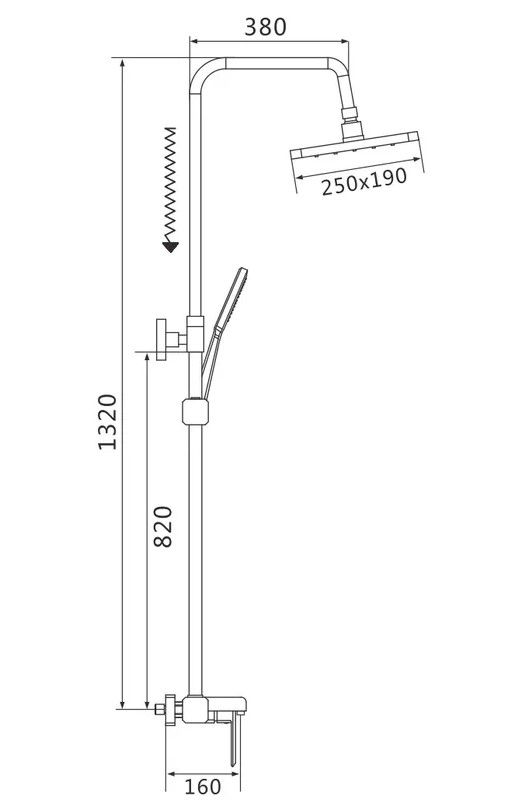 Душевая система Shevanik S8836H, черный.Количество режимов струи: 2.Размер верхнего душа: 25x19 см.Управление: рычажное.Излив для наполнения ванны: да.