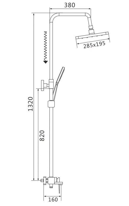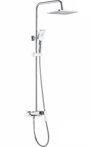 Душевая система Shevanik S8936, хром.Количество режимов струи: 3.Размер верхнего душа: 28,5x19,5 см.Управление: рычажное.Излив для наполнения ванны: да.
