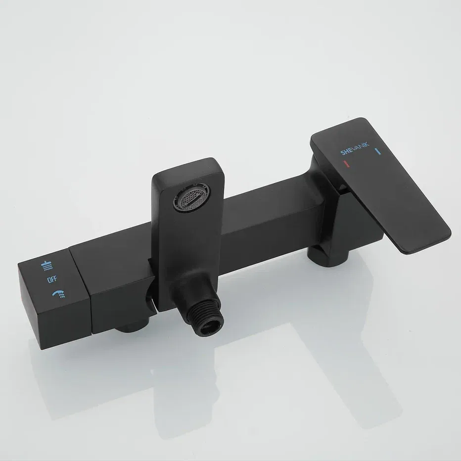 Душевая система Shevanik S8936H, черный.Количество режимов струи: 3.Размер верхнего душа: 28,5x19,5 см.Управление: рычажное.Излив для наполнения ванны: да.