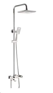 Душевая система Shevanik S9036, хром.Количество режимов струи: 3.Размер верхнего душа: 28x19 см.Управление: рычажное.Излив для наполнения ванны: да.