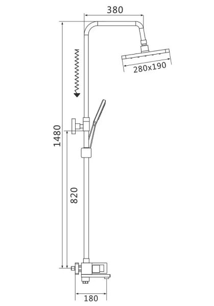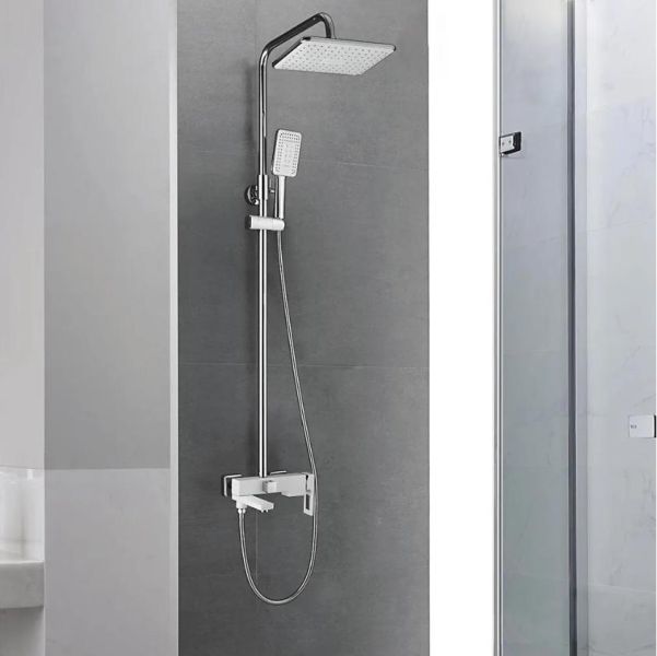 Душевая система Shevanik S9036F, белый/хром.Количество режимов струи: 3.Размер верхнего душа: 28x19 см.Управление: рычажное.Излив для наполнения ванны: да.