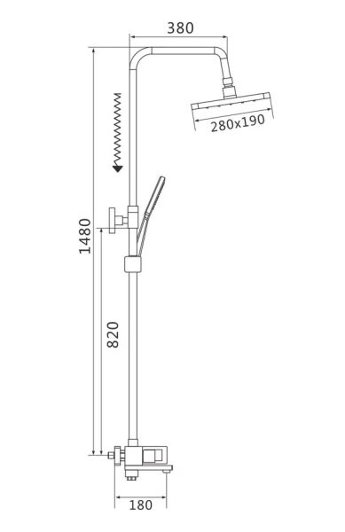 Душевая система Shevanik S9036H, черный.Количество режимов струи: 3.Размер верхнего душа: 28x19 см.Управление: рычажное.Излив для наполнения ванны: да.