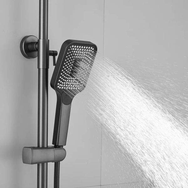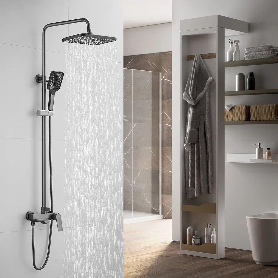 Душевая система Shevanik S9136T, оружейная сталь.Количество режимов струи: 3.Размер верхнего душа: 31x21,5 см.Управление: рычажное.Излив для наполнения ванны: да.