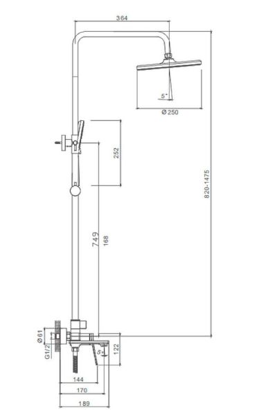 Душевая система Splenka S04.24.06. Цвет: черный. Материал: латунь. Управление: однорычажное. Механизм: керамический картридж. Излив: поворотный. Аэратор. Стандарт подводки: G 1/2. Форма верхнего душа: круглая. Диаметр верхнего душа: 250 мм. Количество режимов струи ручного душа: 3. Регулируемая душевая штанга: 820-1475 мм. Монтаж: на стену.