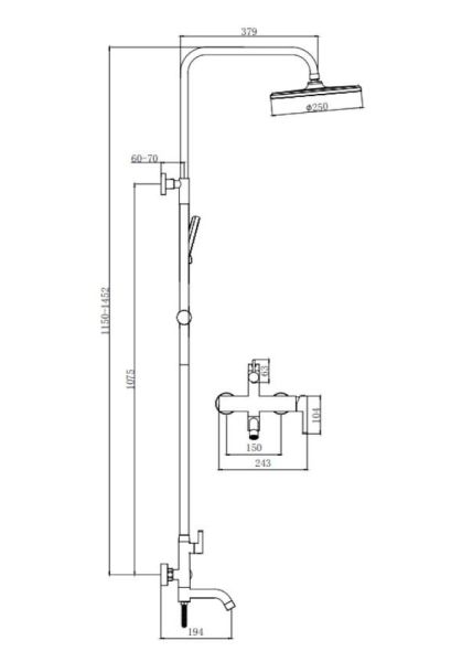 Душевая система Splenka S221.24.06, черный. Душевая система подходит для ванны и душа. Излив у системы имеет функцию переключения режима подачи воды. Верхний душ имеет круглую форму, из авс-пластика. Верхний душ - ∅250мм. Душевая лейка - 3 режима. Гарантия 5 лет.