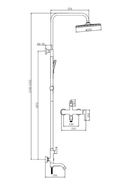 Душевая система Splenka S221.24.09, графит. Душевая система подходит для ванны и душа. Излив у системы имеет функцию переключения режима подачи воды. Верхний душ имеет круглую форму, из авс-пластика. Верхний душ - ∅250мм. Душевая лейка - 3 режима. Гарантия 5 лет.