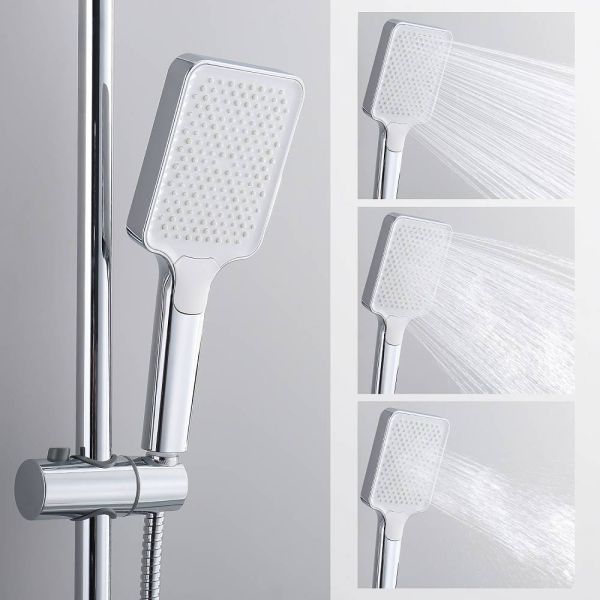 Душевая система с термостатом Splenka S224.26, хром. Управление: термостат. Механизм: термостатический картридж. Стандарт подводки: G 1/2. Размер верхнего душа (ШхД): 320х210 мм. Количество режимов струи ручного душа: 3. Регулируемая душевая штанга: 1160-1560 мм. Монтаж: на стену. Излив - функция переключения.