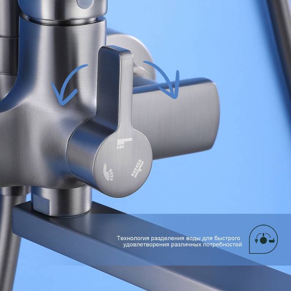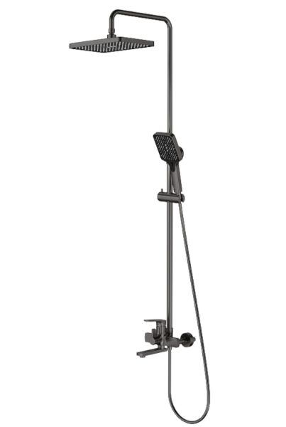 Душевая система Splenka S30.24.09, черный. Душевая система подходит для ванны и душа. Излив у системы имеет функцию переключения режима подачи воды. Верхний душ имеет прямоугольную форму размером 32 на 21 см. Ручная лейка у системы 3-х режимная. Лейки изготовлены из авс-пластика.