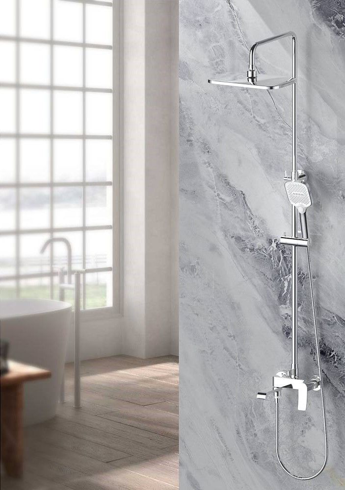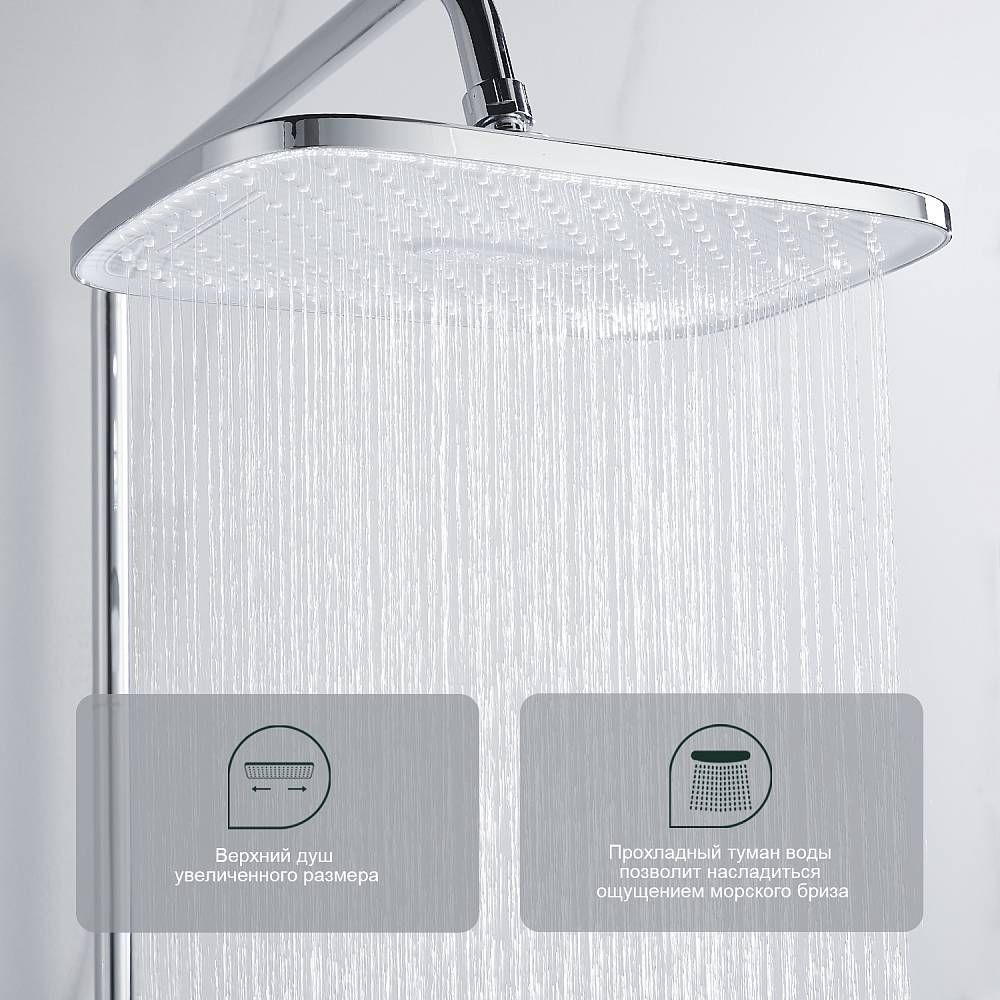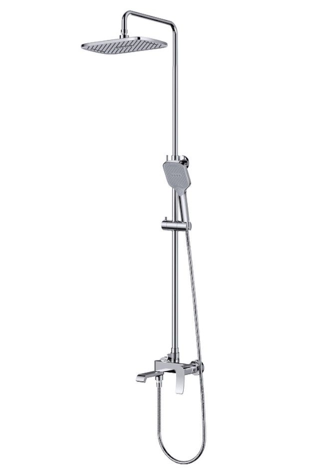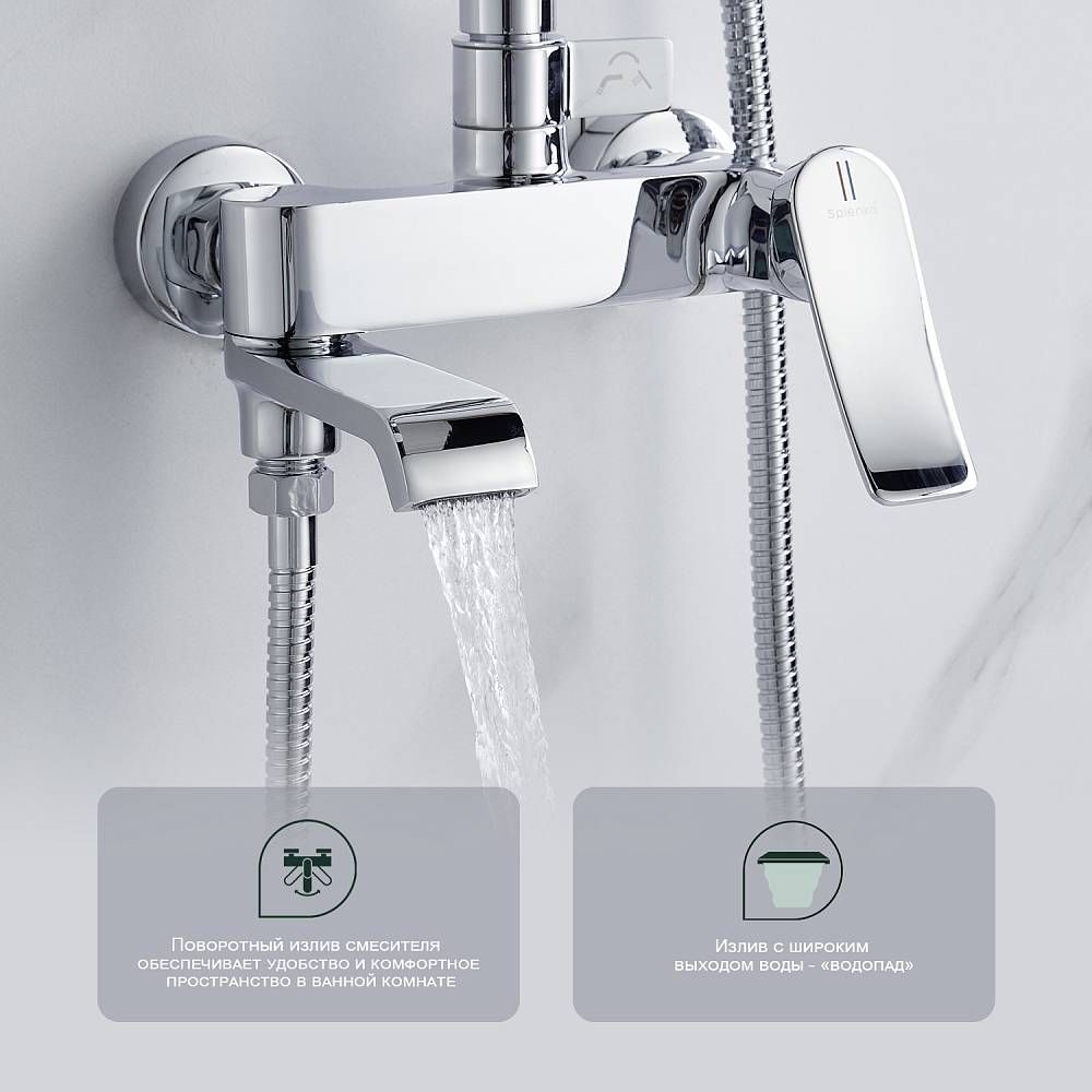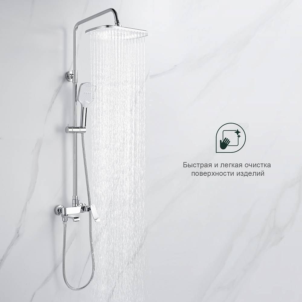 Душевая система Splenka S31.24. Цвет: хром. Материал: латунь. Управление: однорычажное. Механизм: керамический картридж. Излив: поворотный. Тип излива: каскадный. Аэратор. Стандарт подводки: G 1/2. Форма верхнего душа: прямоугольная. Размер верхнего душа (ШхД): 320х210 мм. Количество режимов струи ручного душа: 3. Переключение режимов ручного душа: кнопочное. Регулируемая душевая штанга. Регулируемый по высоте держатель ручного душа. Монтаж: на стену. Излив - функция переключения.