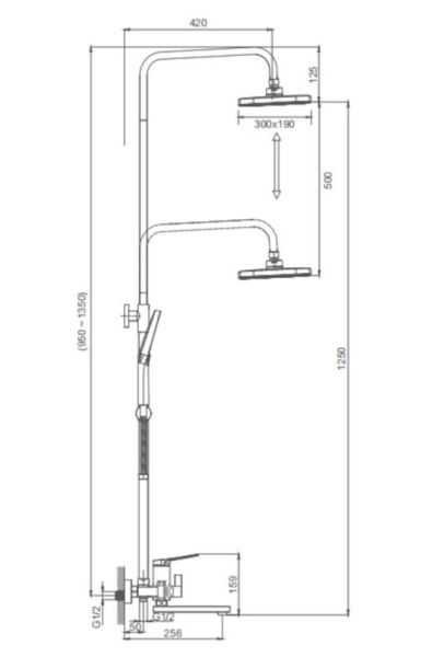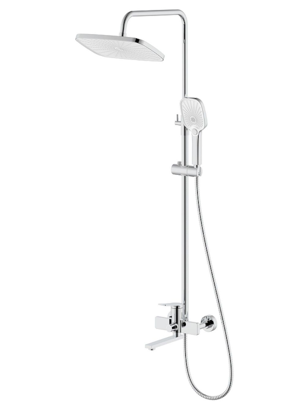 Душевая система Splenka S40.24. Цвет: хром. Материал: латунь. Управление: однорычажное. Механизм: керамический картридж. Излив: поворотный. Аэратор. Стандарт подводки: G 1/2. Форма верхнего душа: прямоугольная. Размер верхнего душа (ШхД): 300х190 мм. Количество режимов струи ручного душа: 3. Переключение режимов ручного душа: кнопочное. Регулируемая по высоте душевая штанга: 950-1350 мм. Регулируемый по высоте держатель ручного душа. Монтаж: на стену.