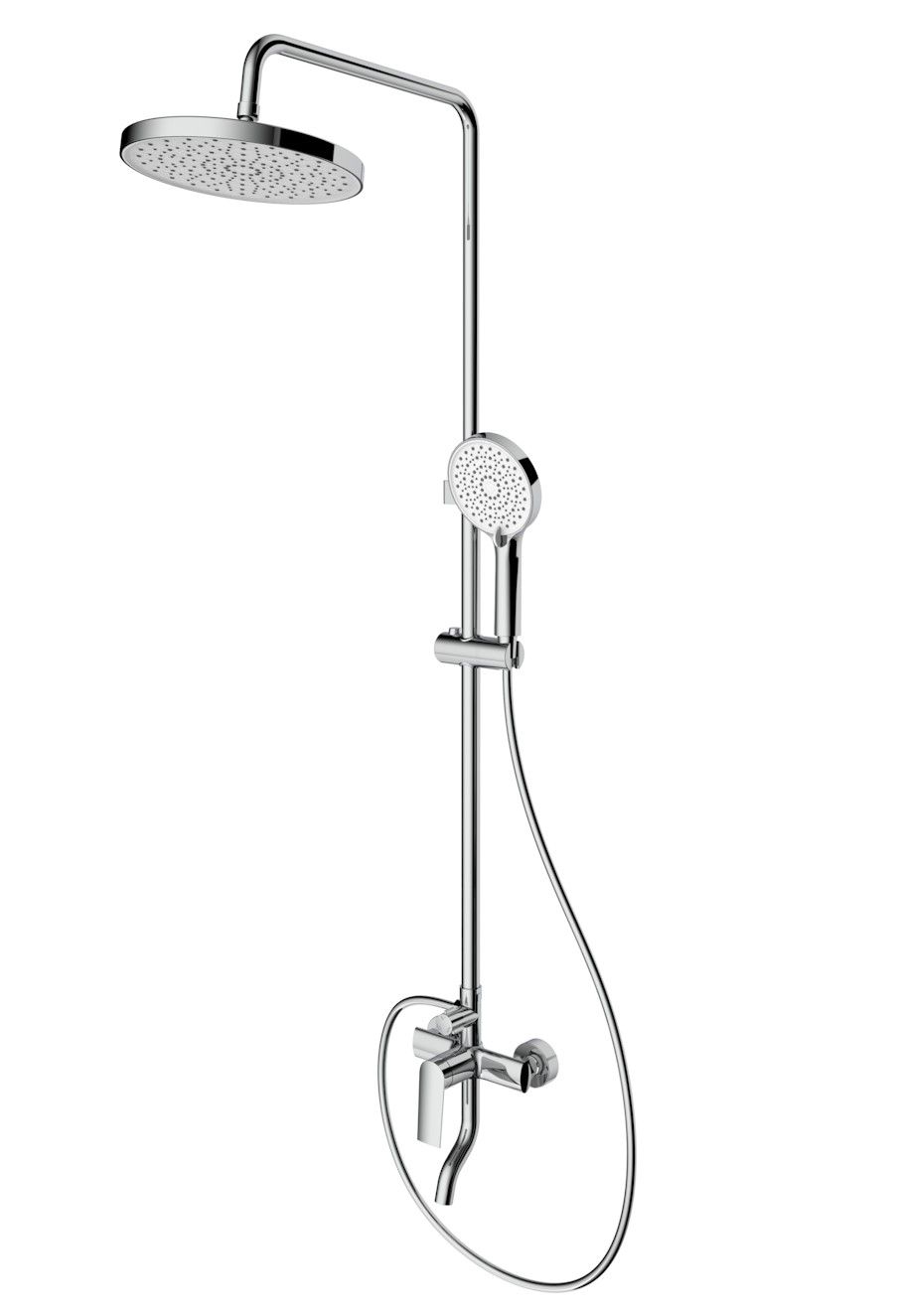 Душевая система Splenka S50.24, хром. Душевая система подходит для ванны и душа. Верхний душ имеет круглую форму размером 25 см. Ручная лейка у системы 3-х режимная. Лейки изготовлены из авс-пластика.