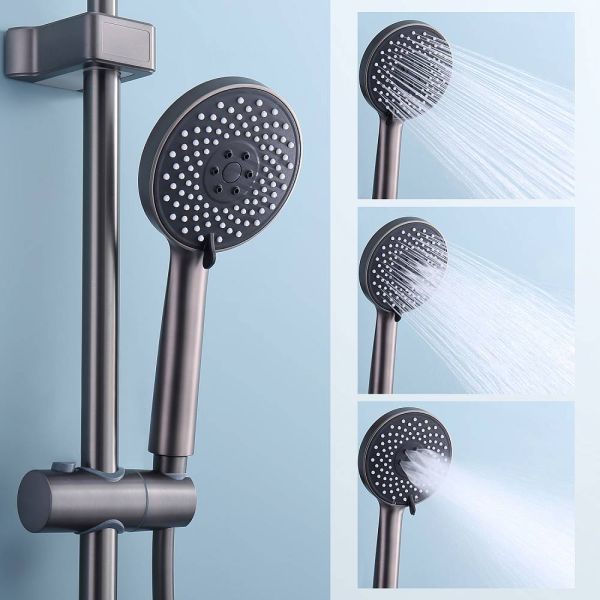 Душевая система Splenka S53.24.09, графит. Душевая система подходит для ванны и душа. Верхний душ имеет круглую форму размером 22 см. Ручная лейка у системы 3-х режимная. Лейки изготовлены из авс-пластика. Изделие выполнено в черном цвете, корпус латунный. Гарантия 5 лет.