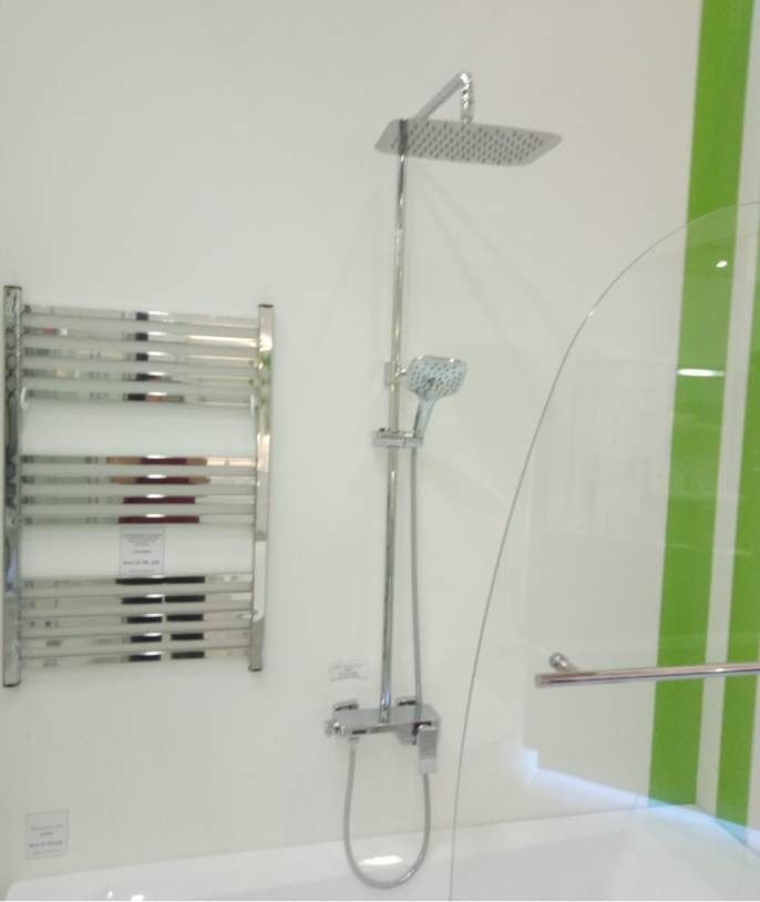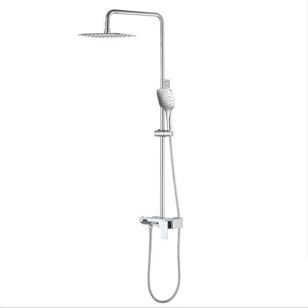 Душевой гарнитур (телескопическая штанга с регулировкой по высоте, ультратонкий верхний душ из нержавейющей стали с регулировкой угла наклона и с силиконовыми форсунками, ручной душ с 2-мя режимами, шланг в металлической оплетке)+ смеситель для ванны с коротким изливом