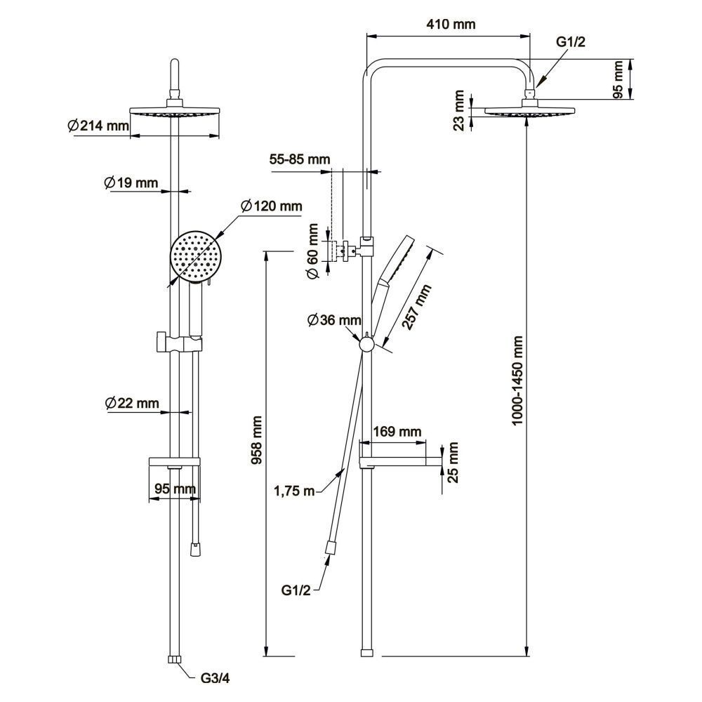 - верхний душ (душевая головка) с регулировкой наклона;