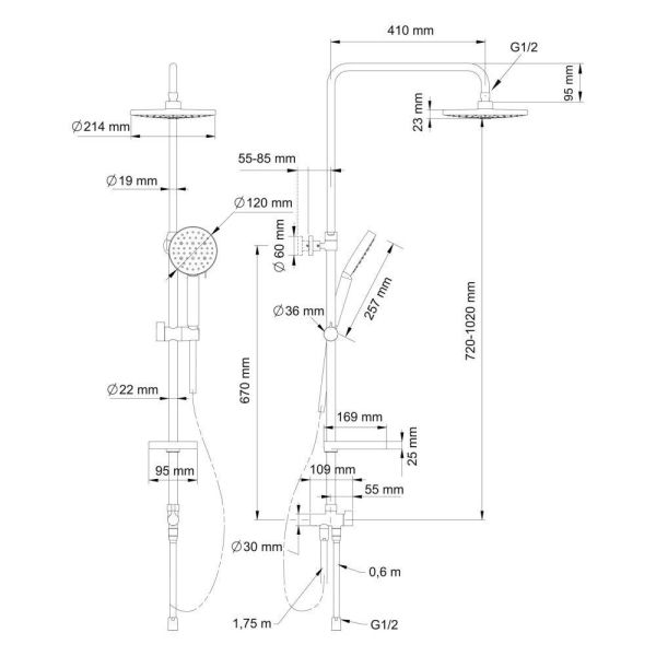 - верхний душ (душевая головка) с регулировкой наклона;