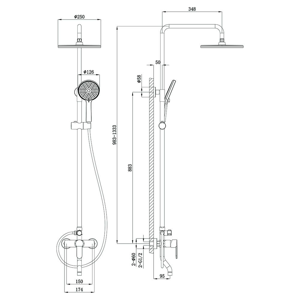 Душевая стойка TURI, чёрный матовый