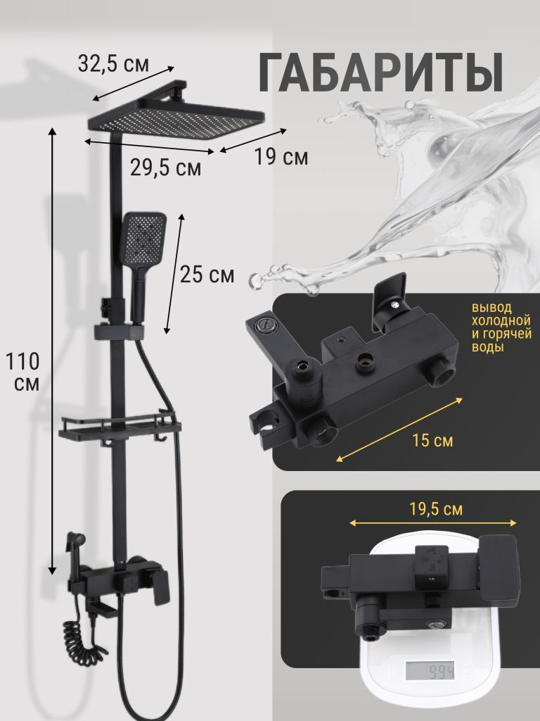 Душевой комплект содержит все необходимое для монтажа. Кроме того, наша душевая стойка черная имеет простой и быстрый монтаж, благодаря чему вы сможете установить ее самостоятельно без привлечения специалистов. Это позволит сэкономить время и деньги, а также получить удовольствие от процесса создания своего уютного уголка в ванной комнате.