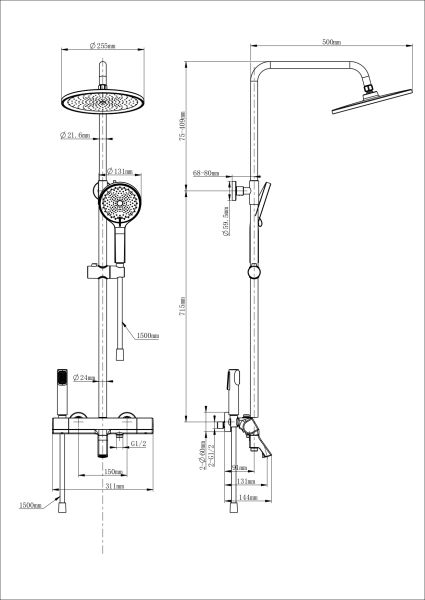 Душевая система с термостатом WONZON & WOGHAND The ONE, Хром (WW-B3094-CR)
