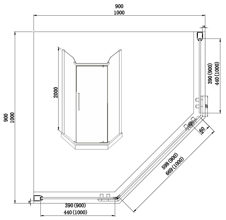 Душевое ограждение AZARIO EDMONTON AZ-NNC3231-2 900 900х900х2000