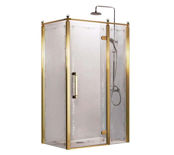 Артикул краткий:AZNBB1231R900GOLDФорма:прямоугольнаяВид поддона:без поддонаИсполнение полотна двери:С узоромОриентация:праваяНаличие крыши:открытая, без крышиВход:спередиКонструкция дверей:распашнаяТолщина полотна, мм:8Материал профиля:алюминийЦвет профиля:золото