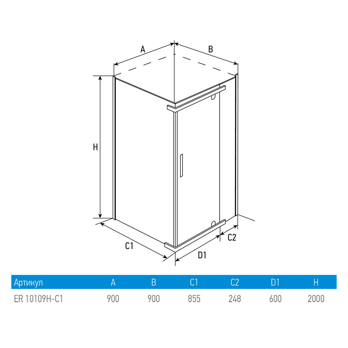 Душевой уголок Erlit Comfort ER10109H-C1 (900x900x2000)