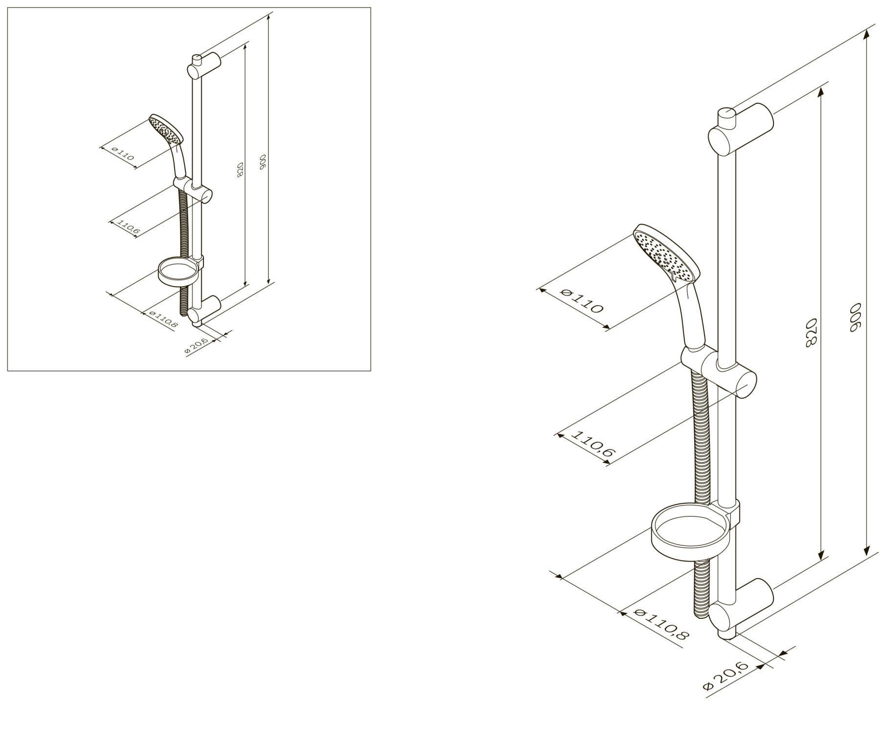 • Размер ручного душа, см: