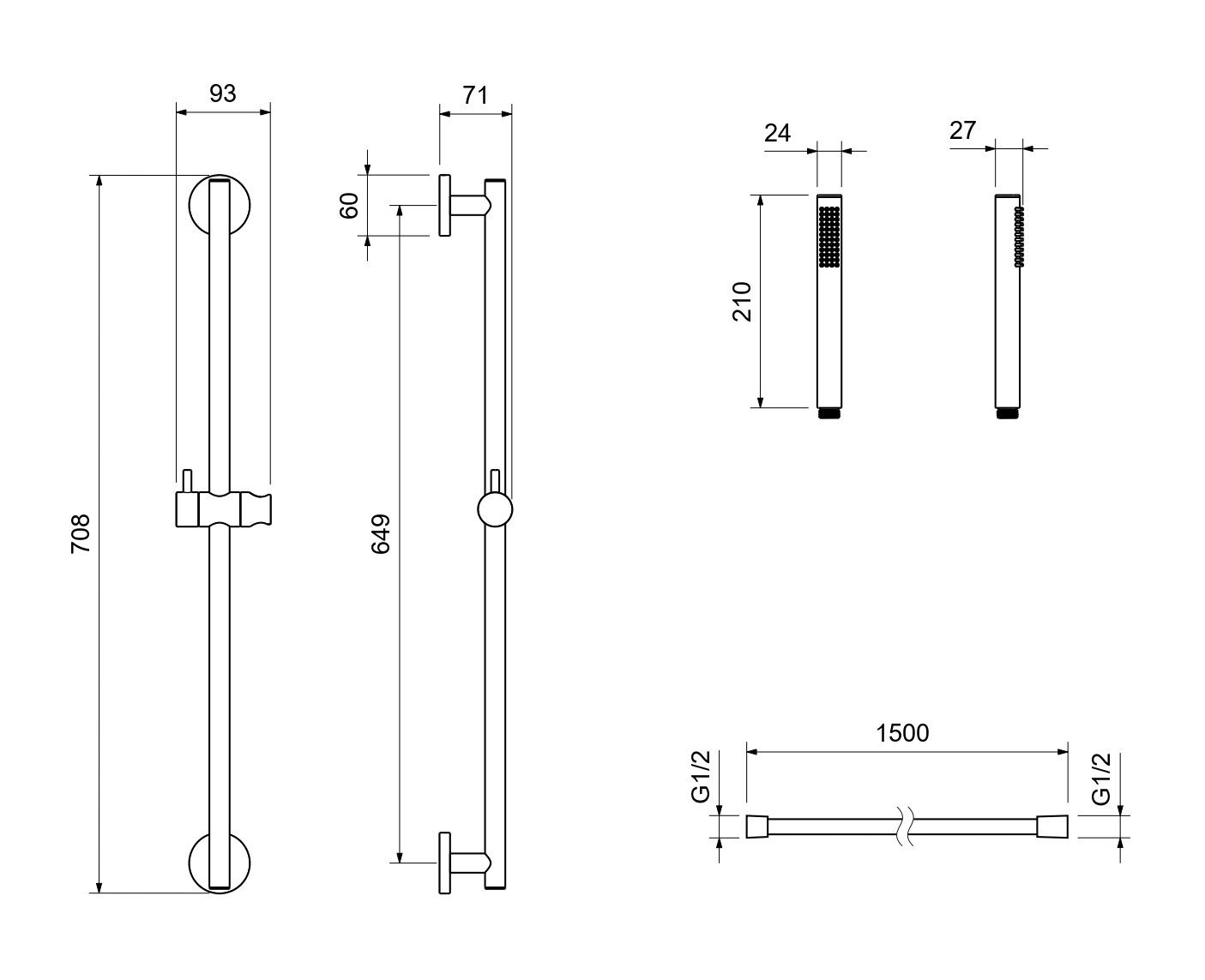 Душевой гарнитур Aquatek Европа AQ2012BGM шлифованный чёрный хром